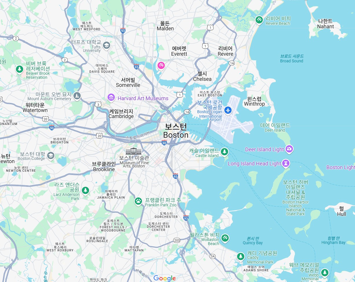 보스턴은 **미국 매사추세츠주(Massachusetts)**의 주도이자, 뉴잉글랜드(New England) 지역의 중심 도시다. 대서양을 끼고 있는 항구 도시고, 도시 전체가 반도 형태로 굴곡져 있어서 해안선이 아름답다.