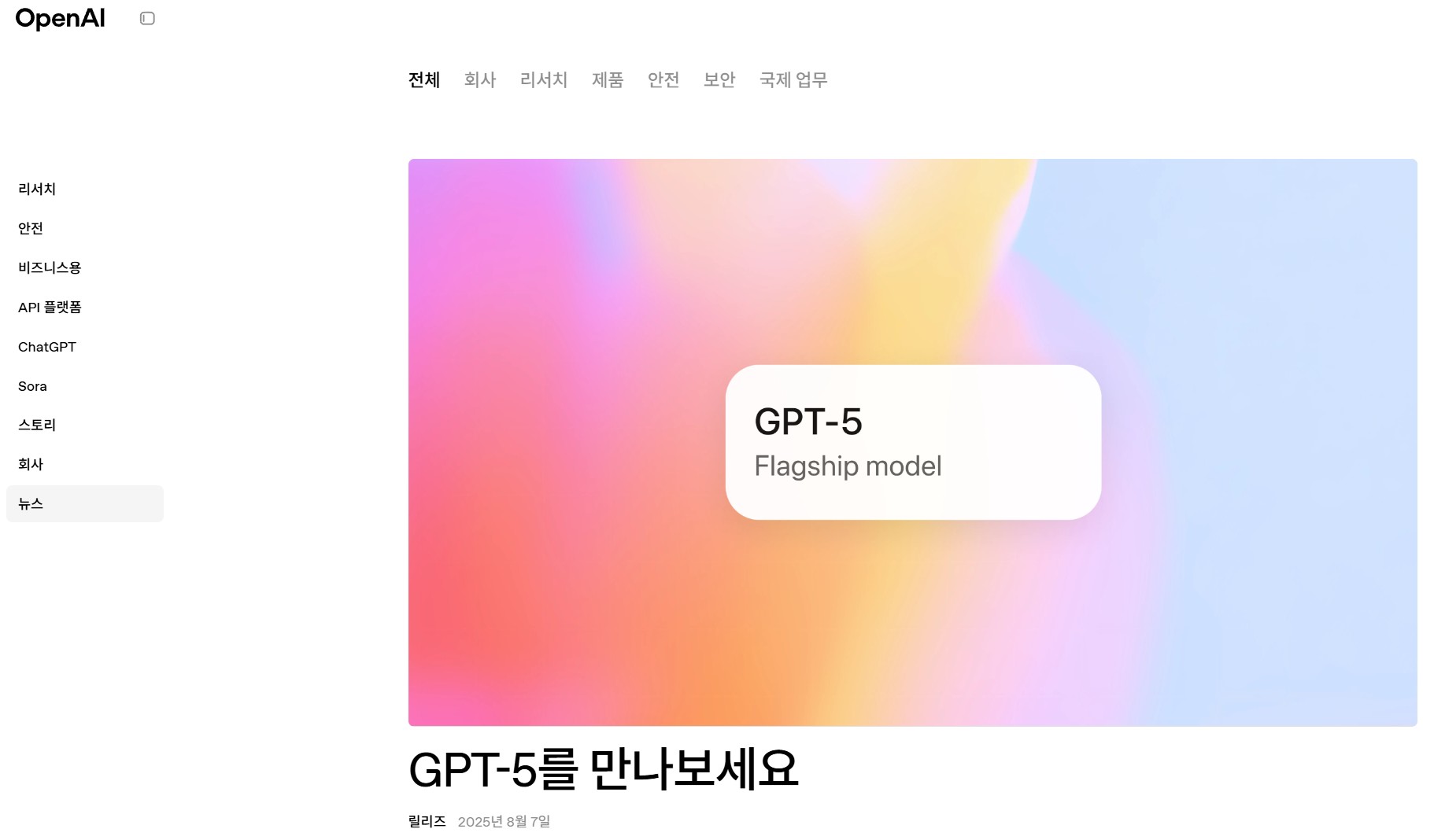 2025년 8월 7일, OpenAI는 드디어 GPT-5를 공식 발표했다. 수많은 기대 속에서 등장한 이번 버전은 전작인 GPT-4-turbo보다 더욱 강력해진 성능과 멀티모달 기능, 사용자 맞춤형 기억 기능을 갖춘 차세대 언어 모델이다. 🗓 GPT-5의 출시 일정2025년 8월 7일: OpenAI 공식 블로그 및 개발자 발표를 통해 GPT-5가 전 세계에 공개되었다.같은 날, GPT-5는 ChatGPT Plus 및 Enterprise 사용자에게 즉시 적용되었고, API 서비스에서도 사용 가능해졌다.무료 사용자 버전은 GPT-4-turbo를 유지하고 있다. ⚙️ GPT-5 주요 기능📌 1. 멀티모달 강화GPT-4-turbo가 이미지 이해에 제한적이었던 반면, GPT-5는 이미지, 텍스트, 음성까지..